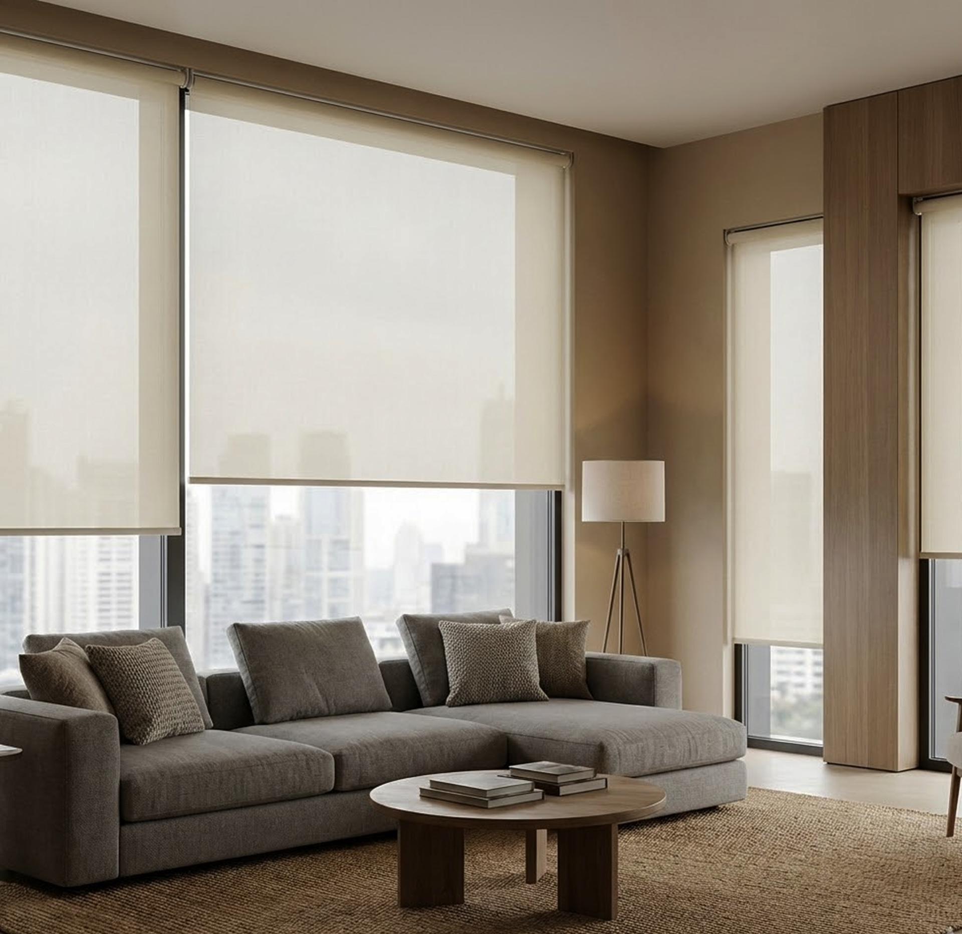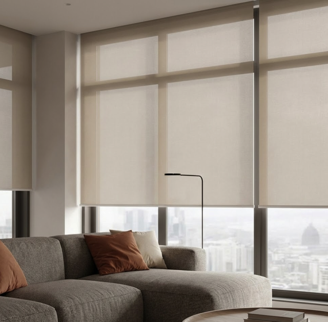 심플하고 모던한 롤 스크린은 미니멀한 인테리어에 완벽합니다.